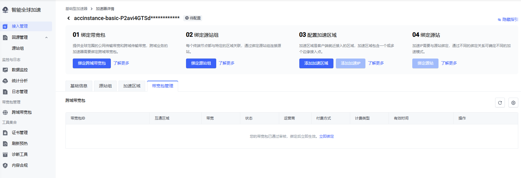 绑定跨域带宽包