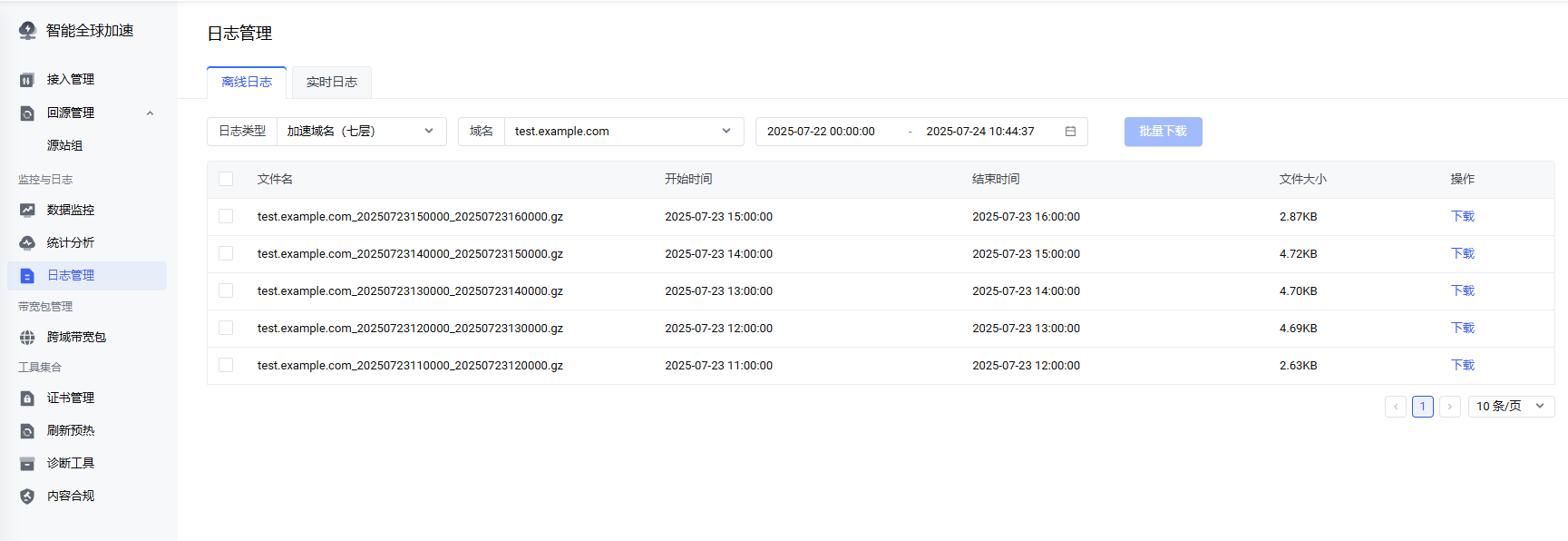 加速域名_年月日时段开始时间_年月日时段结束时间。例如:www.example.com_20251220200000_20251220210000.gz。listener-name-监听器ID随机序列号.snssdk.com_年月日时段开始时间_年月日时段结束时间。例如:listener-name-W7Rr3gjkqHMFxxxxxxxxxx.snssdk.com_20251220200000_20251220210000.gz。您查询某一加速域名的离线日志、下载某一日志文件后,日志如下: