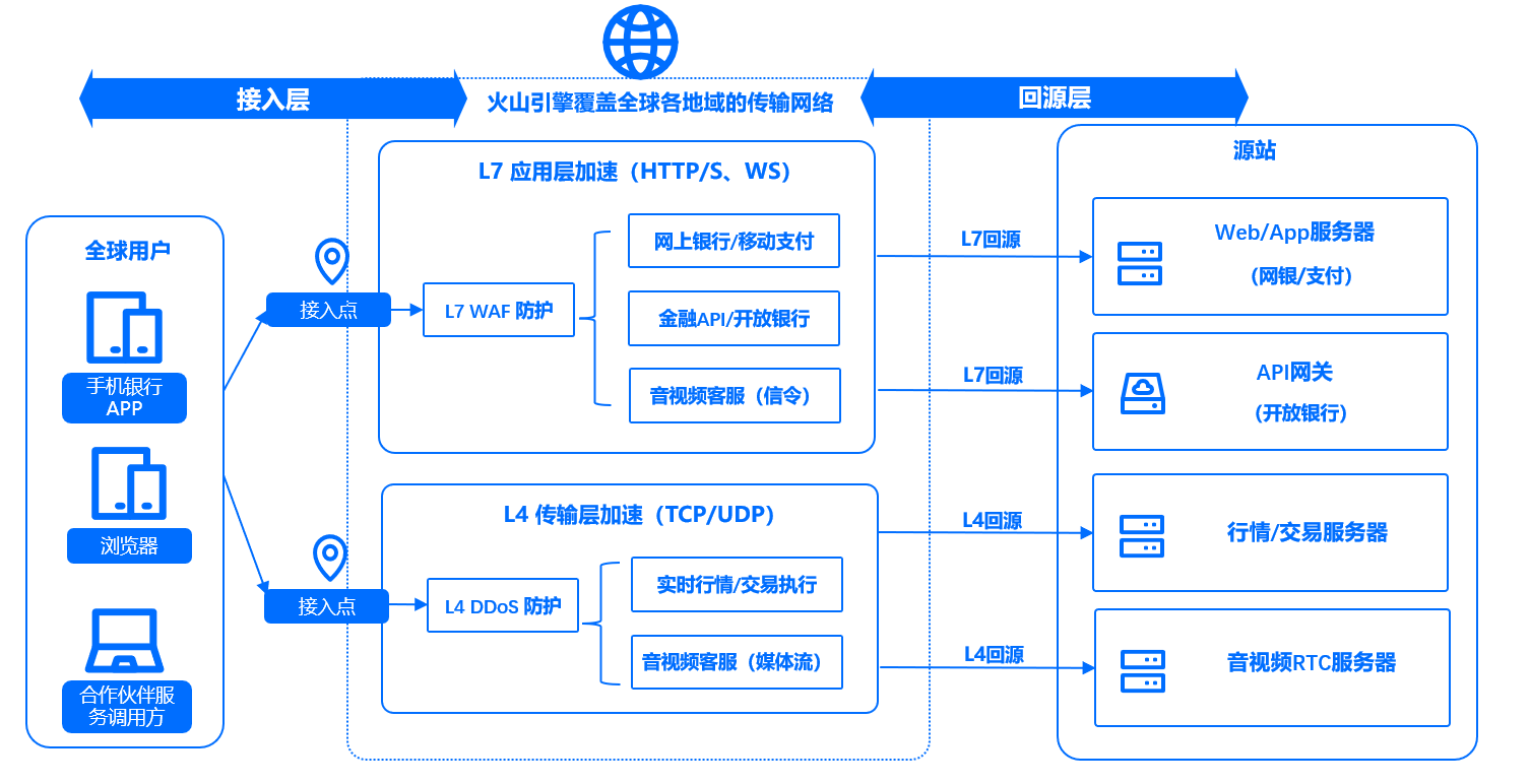 智能全球加速可以为金融机构及金融科技(FinTech)打造安全、合规、低延时的全球连接,满足数字金融在支付、交易、风控和合规等方面复杂、多元的覆盖七层、四层、三层的加速需求。