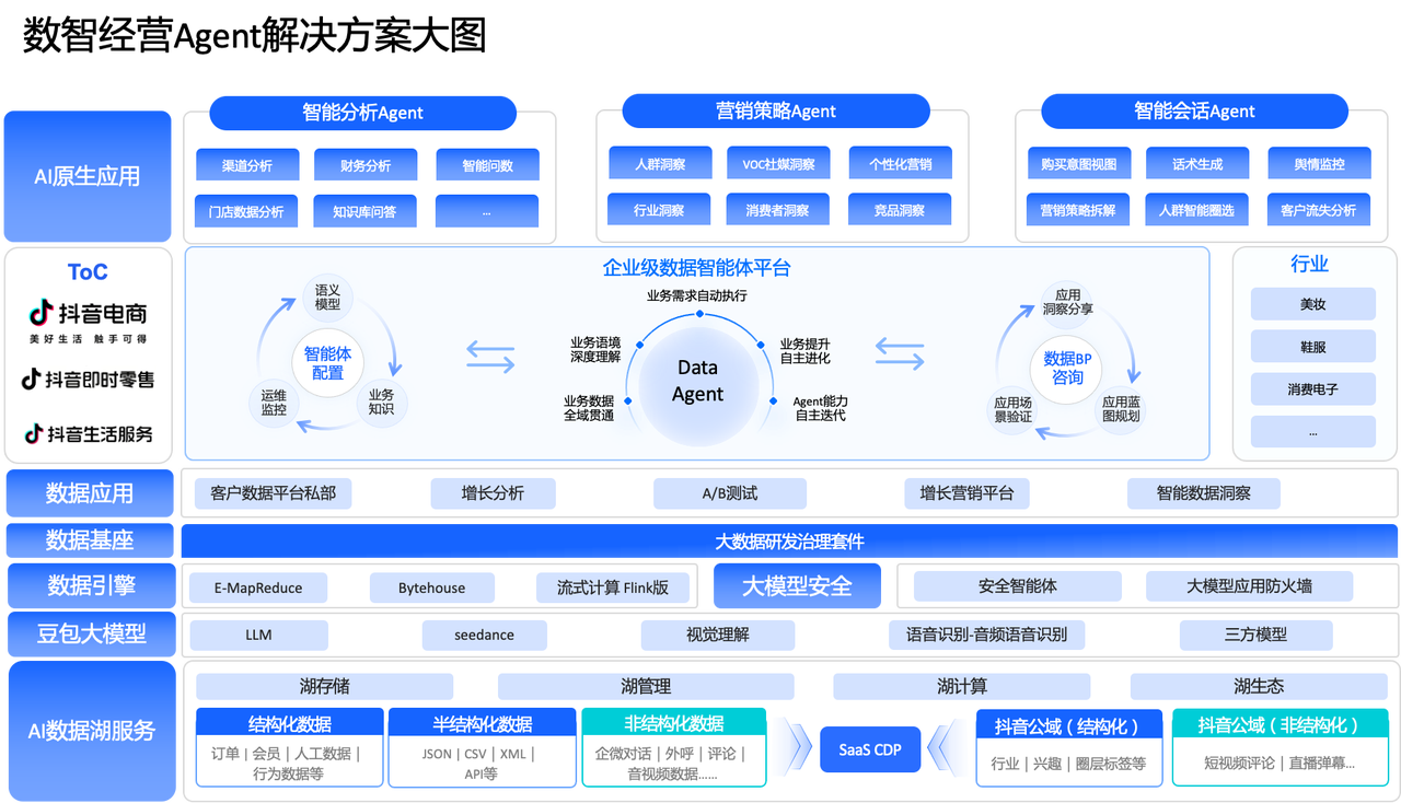 借助火山引擎Data Agent的产品及豆包大模型技术能力,VOCM平台可以对输入的非结构化数据进行深度分析和理解,从而实现对社交平台的信息进行精准分类,准确识别内容含义及对应用户